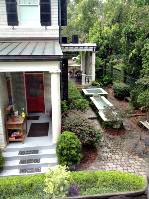And here’s a photo of the carriage house where we stayed from the courtyard. Check out that stained glass on the door! Simply gorgeous!