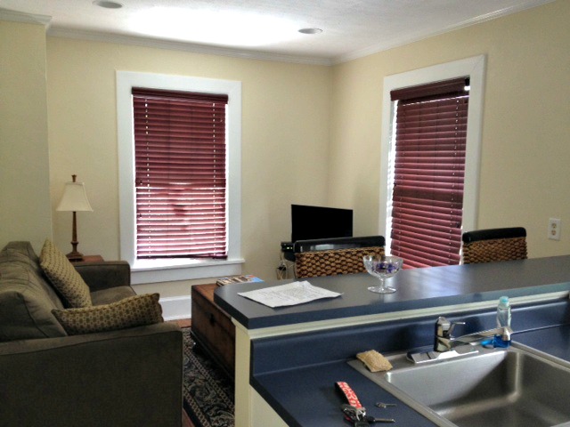 Here’s a photo of the kitchen and living room