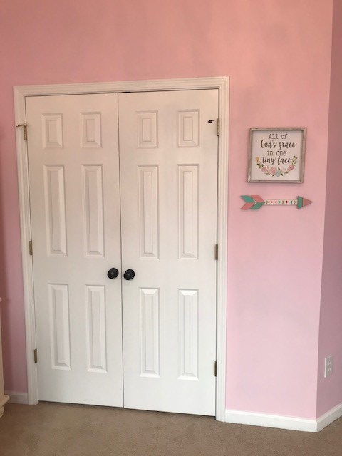 I am so excited to finally let you in today on a nursery tour of baby girl’s room. Hard to believe she will be here in just 16 days. Please note the room is about 90% finished. The only thing left is her curtains and curtain rods that my sweet mother-in-law is helping me with. I will be sure to post photos of the curtains once they are complete. Without further ado here is the rest of the nursery: