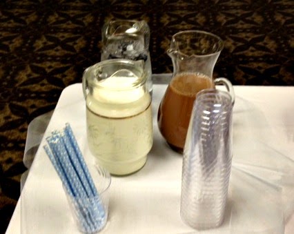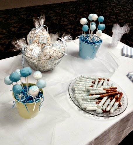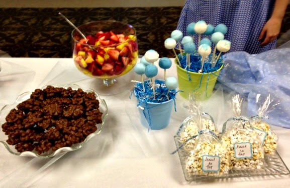 The food included “About to Pop” bags of popcorn, cake pops, fruit, chocolate covered peanuts, cookies and cream dip, white chocolate cupcakes, chocolate covered pretzels, chocolate milk, milk, and blueberry infused water.