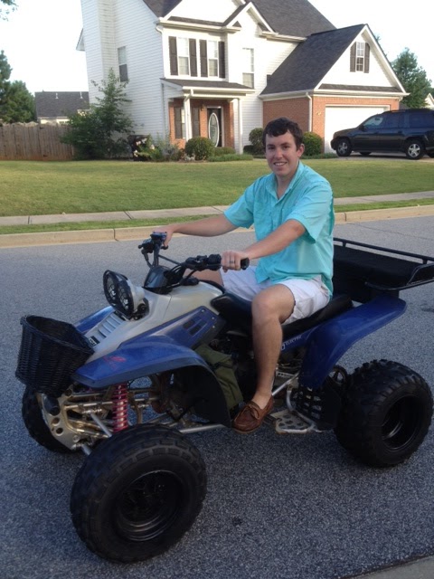 See that 4-wheeler he is on? That would be his new toy he traded for last night. That’s right. He traded some random stuff he had around our house for a Yamaha Warrior 350 4-wheeler.