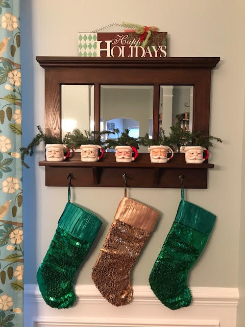 We collect the old Santa mugs but due to lead in the cups you can’t drink out of them so we purchased these cute ones for our hot coco from Pottery Barn