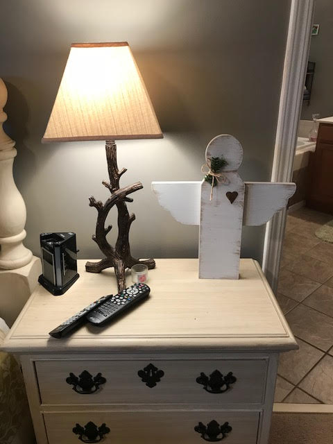 I love the angel on my nightstand given to me by a few of my co-workers last Christmas