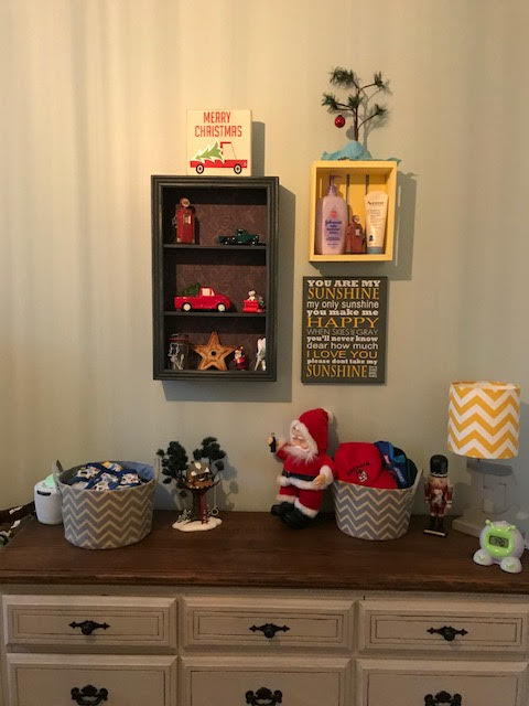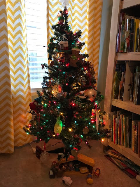 Lots of special Christmas decor in my son’s room including the tree house pictured below from the Christmas Village