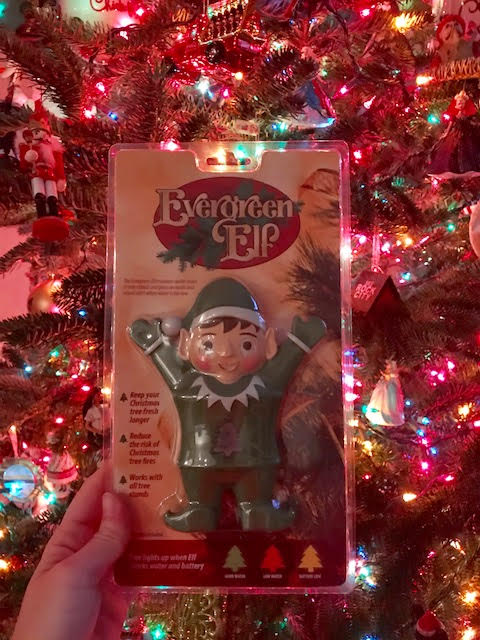 The Evergreen Elf monitors water levels in your Christmas tree stand and gives an audio (cute little elf voice that says water low) and visual alert when water is too low. I highly recommend this neat product to keep your family safe this Christmas and to help remind you to water your tree.