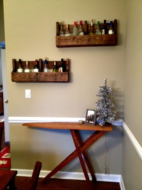 The pallet wall is a mixture of homemade Christmas decor made by our little guy, sleigh bells, and of course our wooden wise men