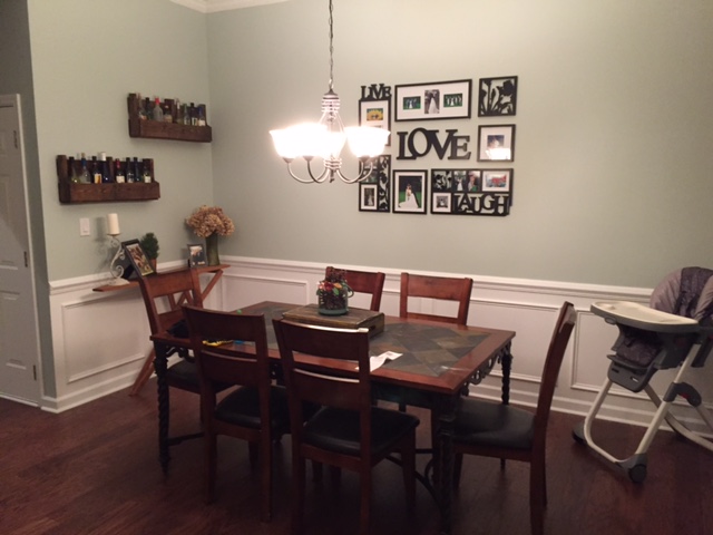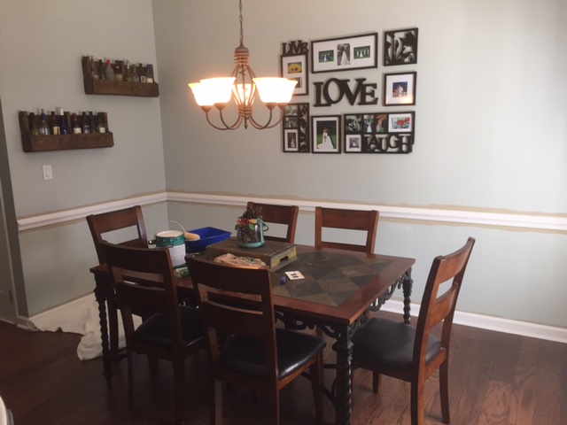 And here is what I came back home to (new paint AND new wainscoting):