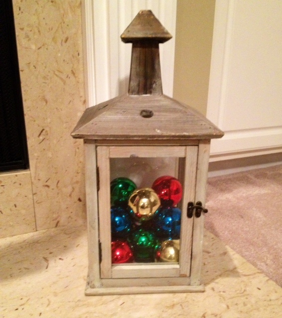 love the lantern full of ornaments! And the pallet wall shelf? So rustic and wonderful.