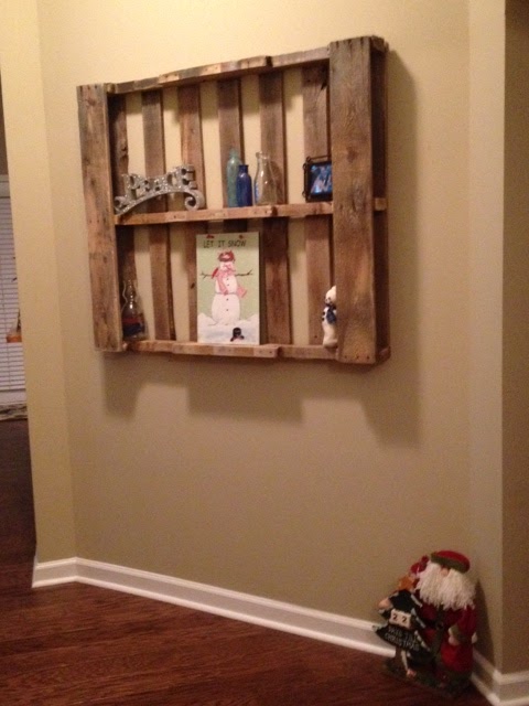 Congrats on your new home! We are having our first Christmas too,at our new house. I really like your pallet shelf. 🙂 Decorating a 10ft tree can be tricky. lol Great job!