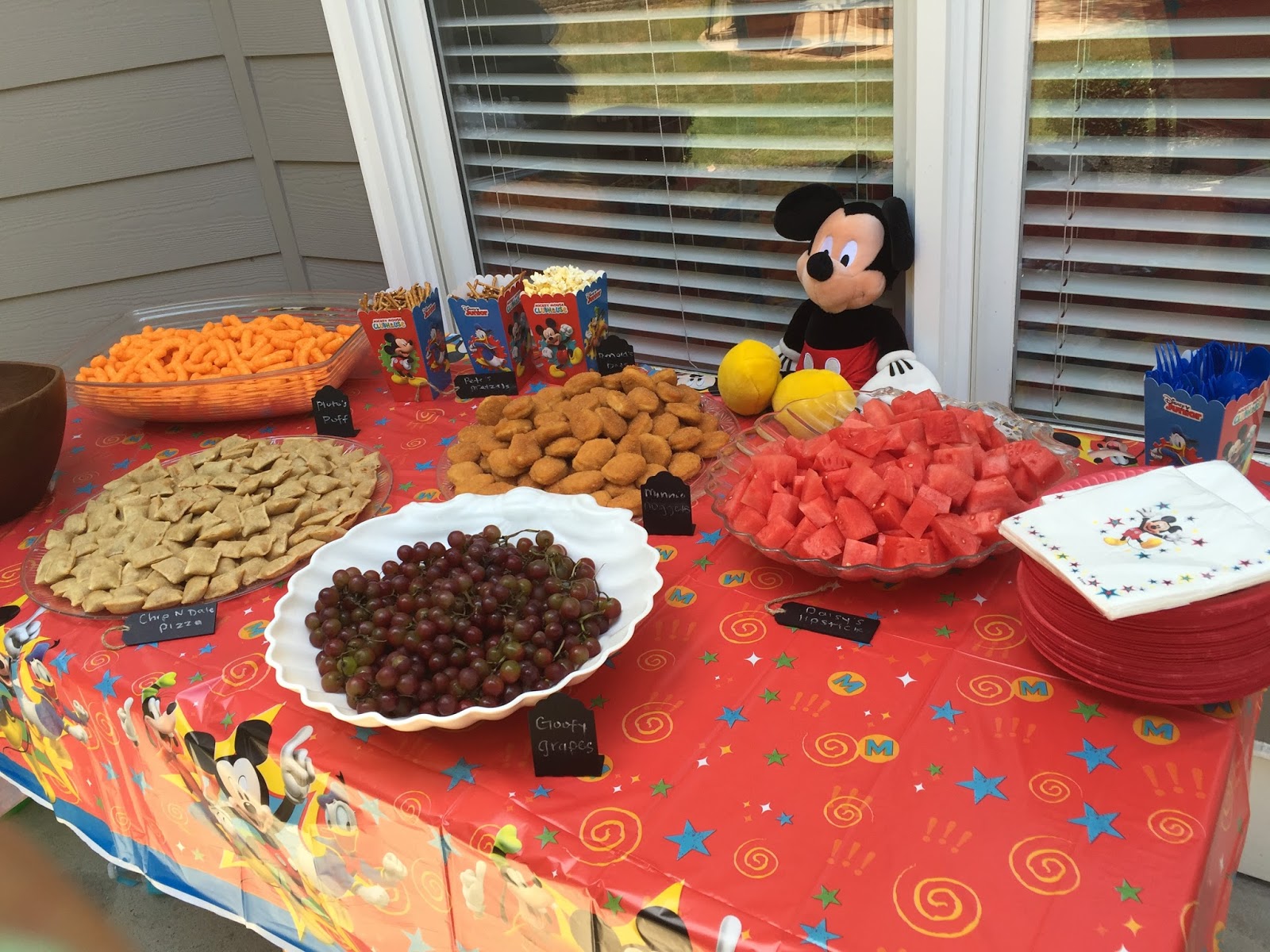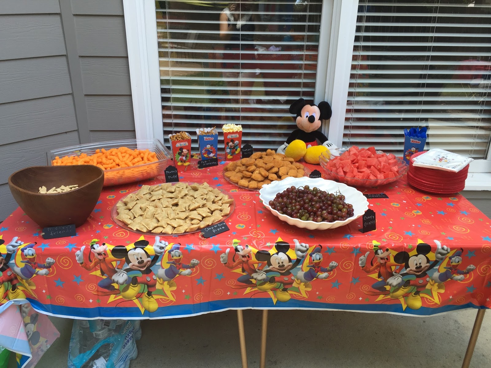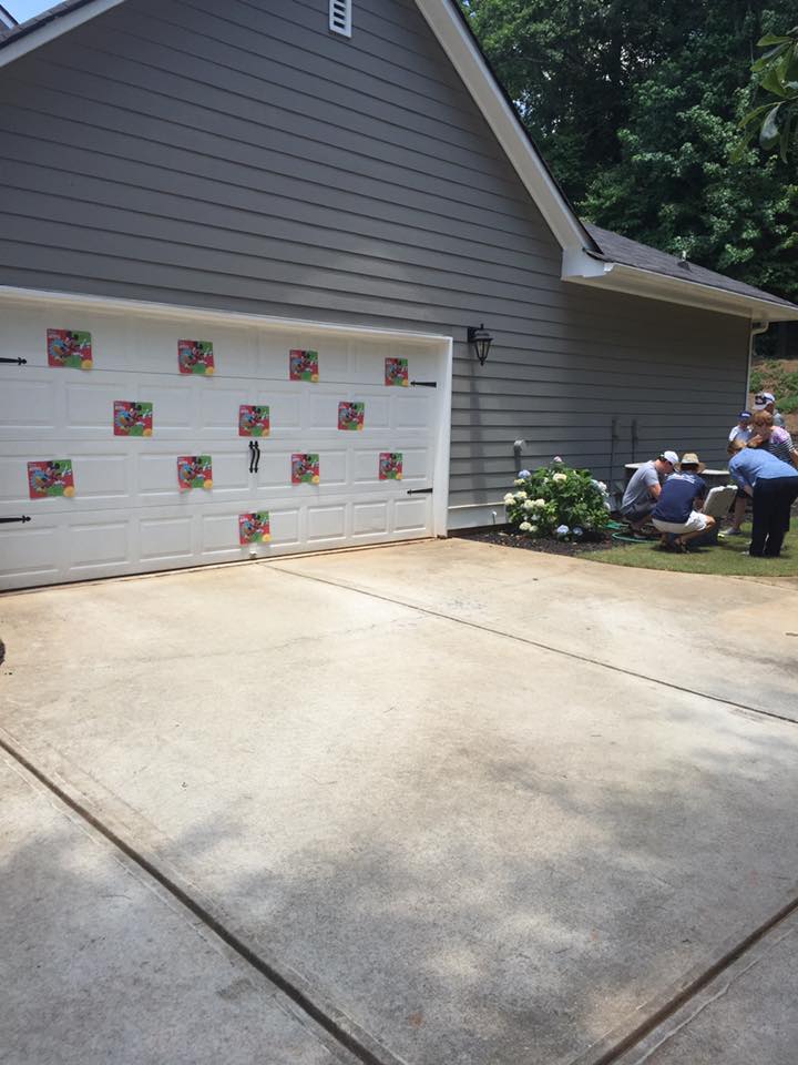 These Mickey faces were posted all over the garage door as decor. (This picture makes me laugh as you can see us blowing up the awesome water balloons in the background.)