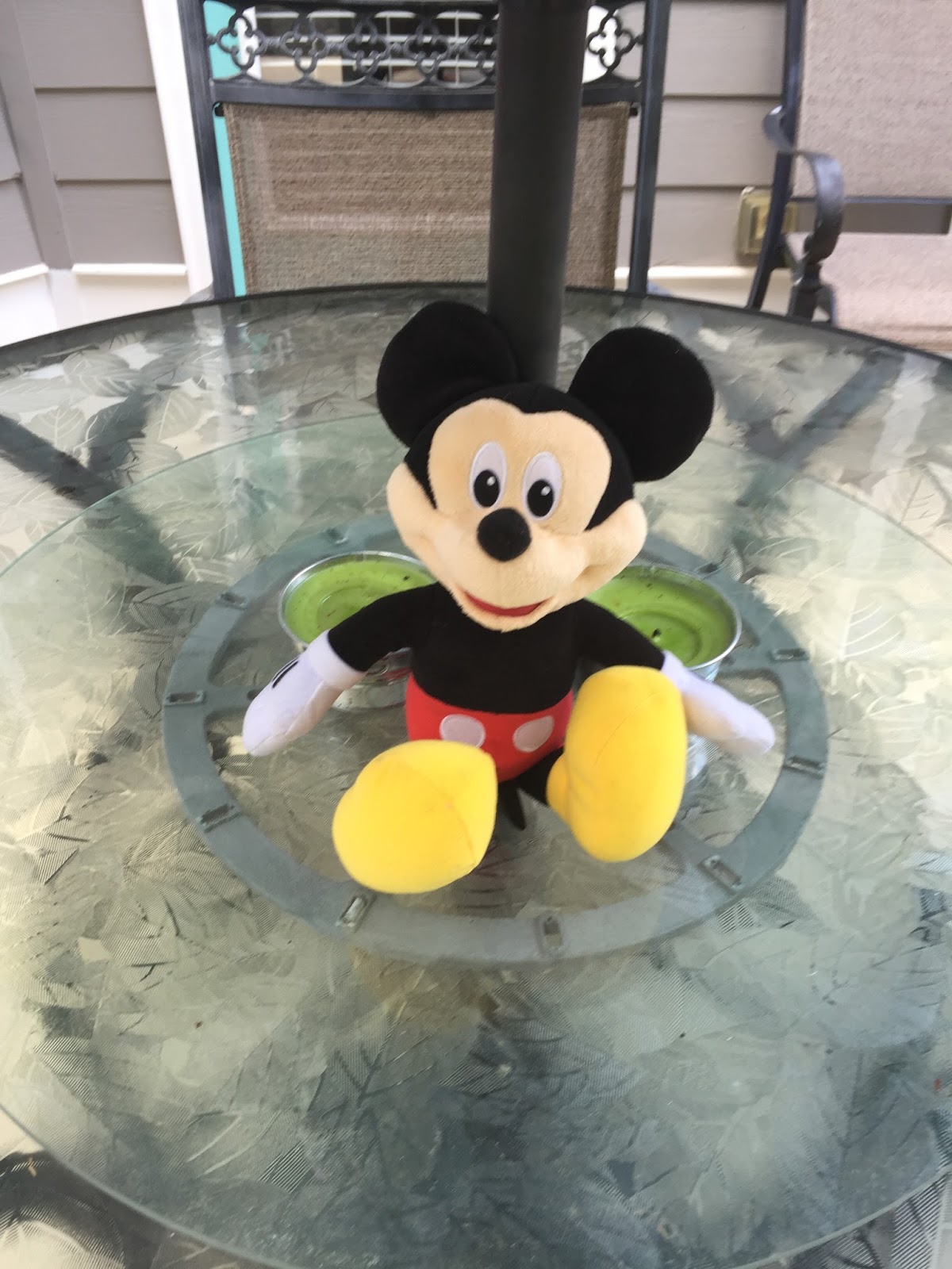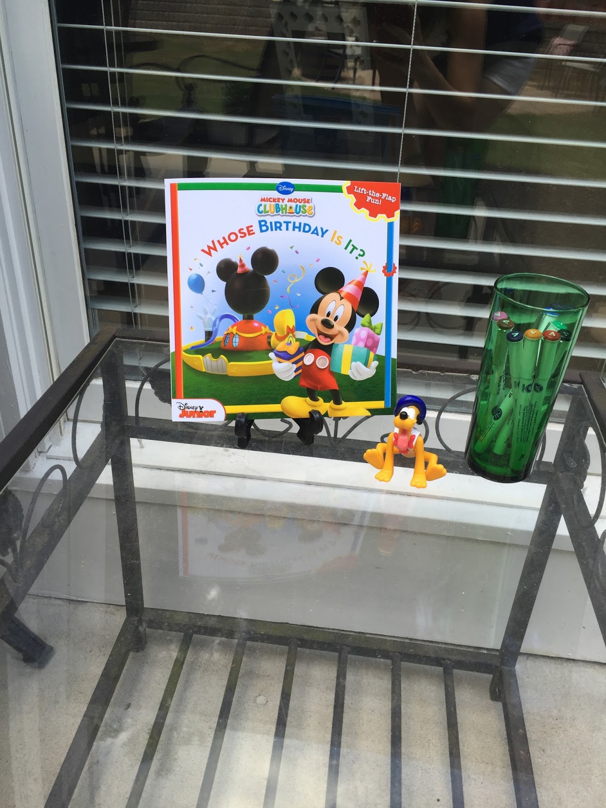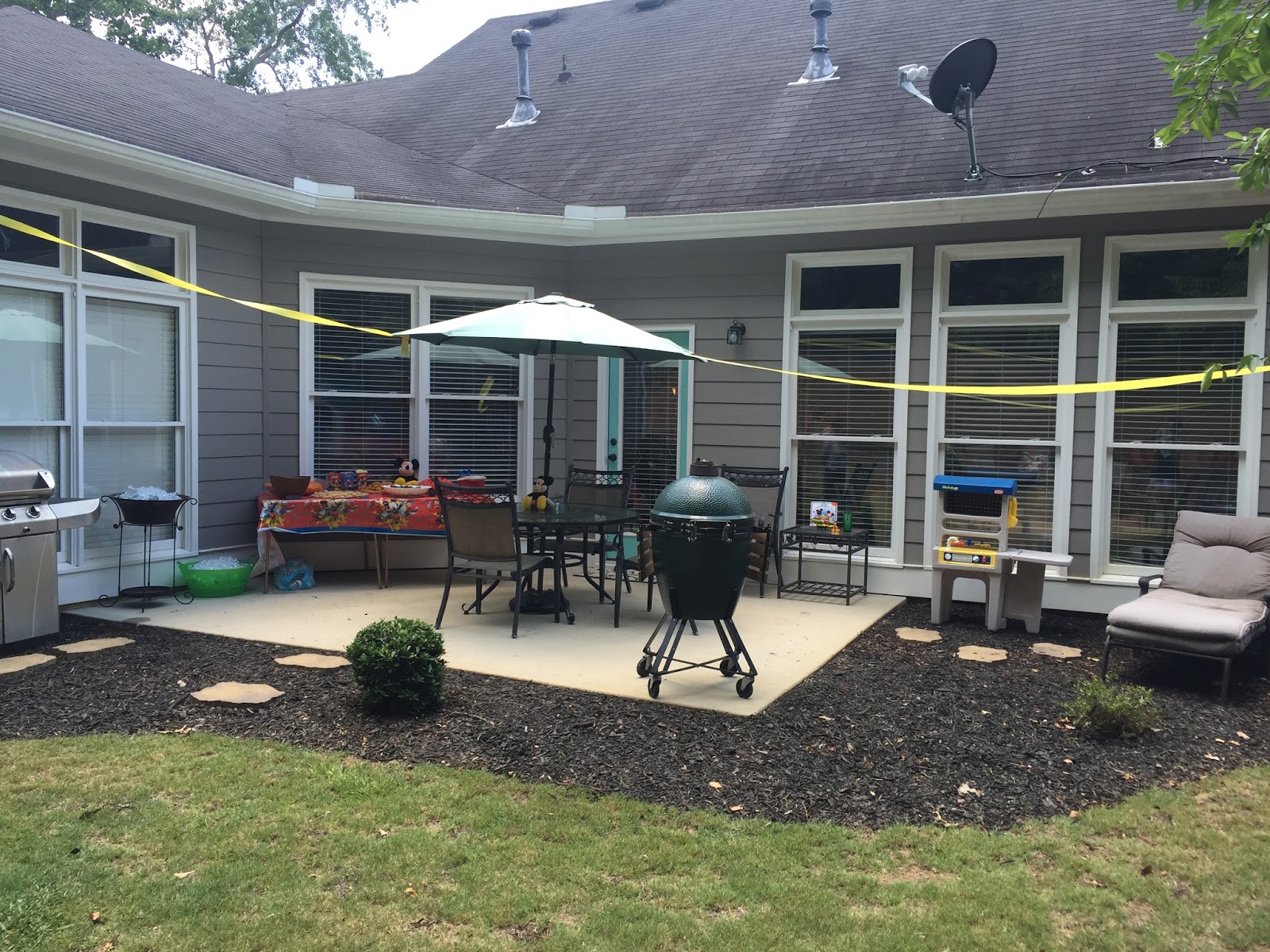These Mickey faces were posted all over the garage door as decor. (This picture makes me laugh as you can see us blowing up the awesome water balloons in the background.)