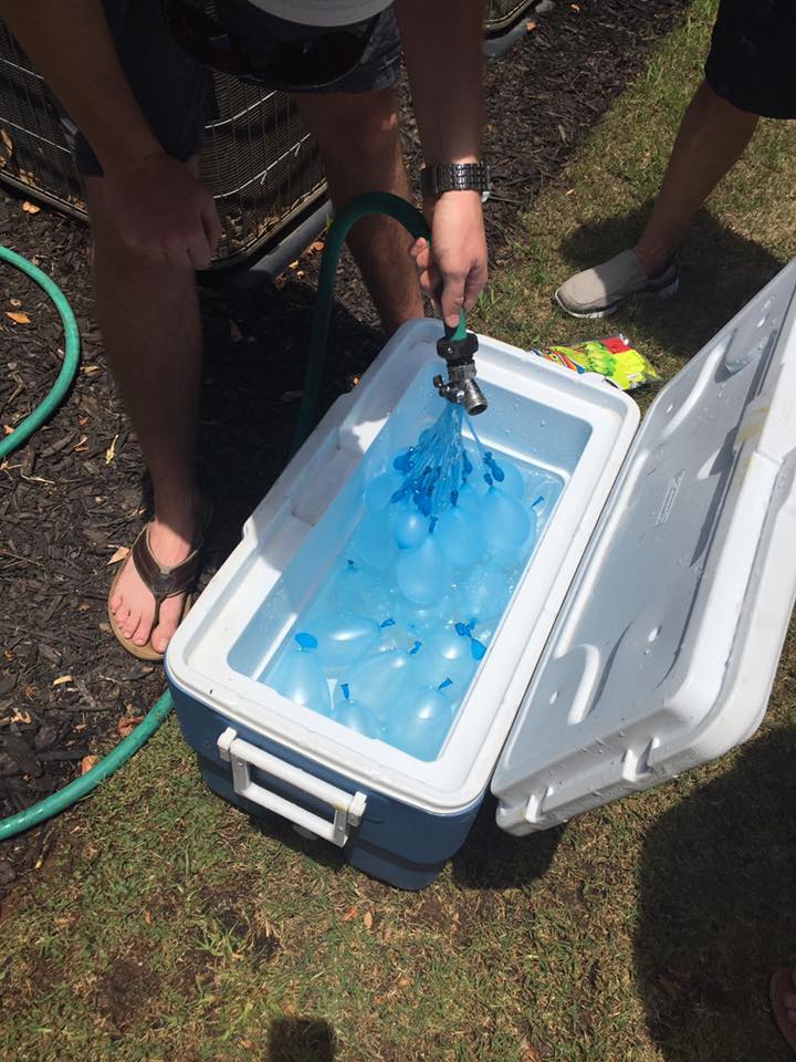 First things first (this is not sponsored) if you have not purchased the quick fill water balloon Shark Tank invention yet you NEED to. Seriously…I bought these for E’s party for only $9 at Walmart and they were worth every. single. penny. They filled over 100 water balloons in a matter of minutes and the kids loved them. Plus it was fun to watch them fill up and tie off all on their own. Totally genius. O.k. now back to the party.