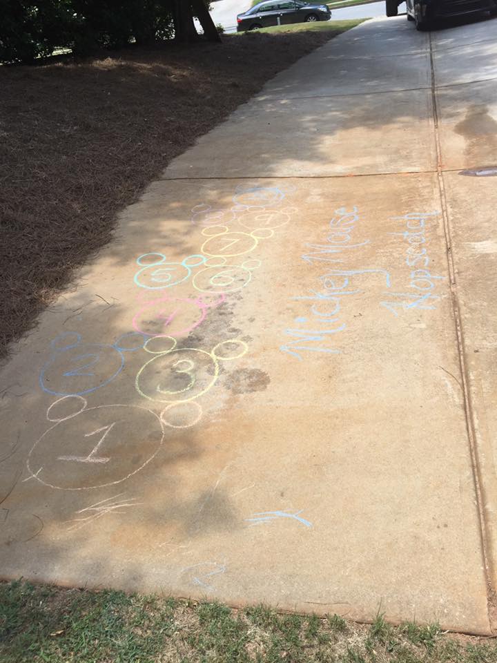 The party was set up in stations so next was the hopscotch game on the driveway.