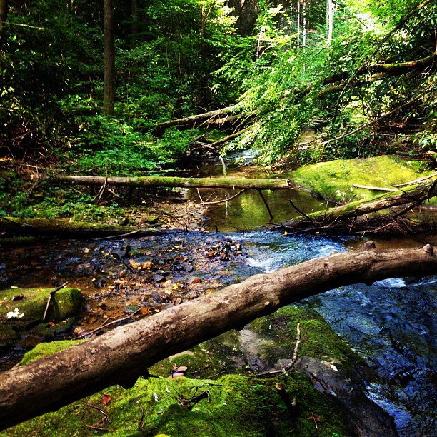 These beautiful falls are located in the Chattahoochee National Forest and are readily accessible $3 a person. The water cascading over the drop offs is created by two creeks. The Curtis Creek falls drop 153 feet and the York Creek falls are a much shorter but still spectacular 50 feet. There is a 1/2 mile paved trail that leads from the parking lot to two viewing decks to see the falls. The 1/2 mile hike leads you by the creek to the top of the falls. It is a gorgeous walk. This would be an easily hike even for an elderly person or small child. Again this is a most see if you are ever in north GA. The below two pictures were taken on the hike to the falls.