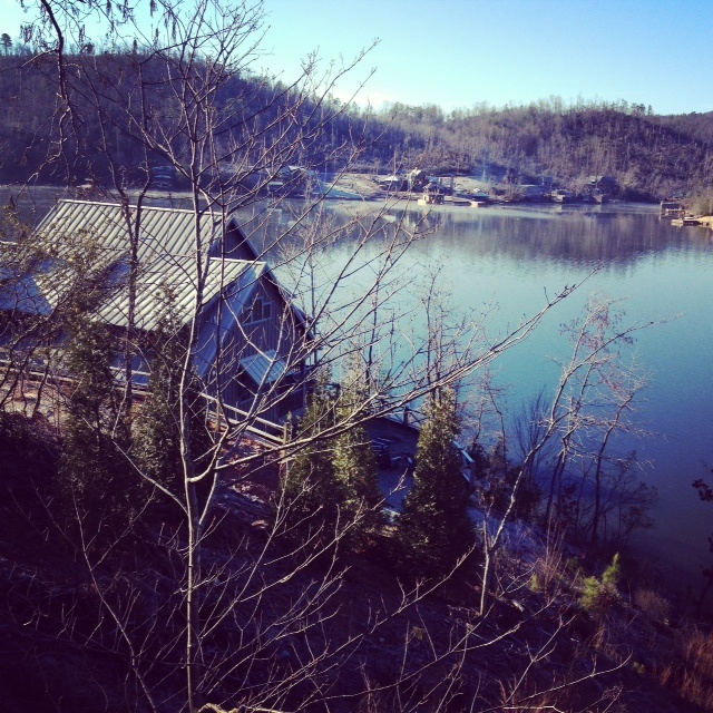 If you have been following me the past year you know that our family’s cherished lake house was taken in the tornado that came through spring before last. We have just finally got the cabin rebuilt and decided to take advantage of that and spent some much needed R&R time in the mountains over the long weekend. The below is a picture I took from our cabin window. You can tell a bunch of trees are still down from the tornado.
