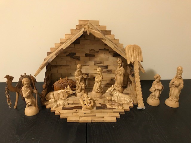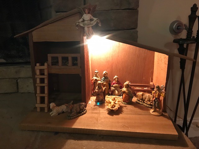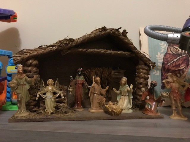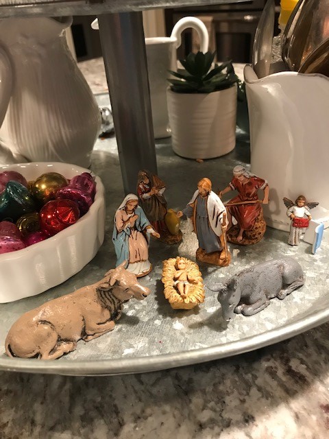 My favorite is the homemade nativity my father in law gave me for Christmas a few years ago. As I mentioned above I grew up with a nativity on our mantel when we were kids and my brother and I played our little hearts out with that nativity and I wanted the same for my kids so my sweet father in law built me my own gorgeous nativity and my mother in law found vintage gorgeous nativity figures (hard plastic so they don’t break) that my kids can play with…my kids love playing with it as much as I used to with my set growing up! Below is a photo.