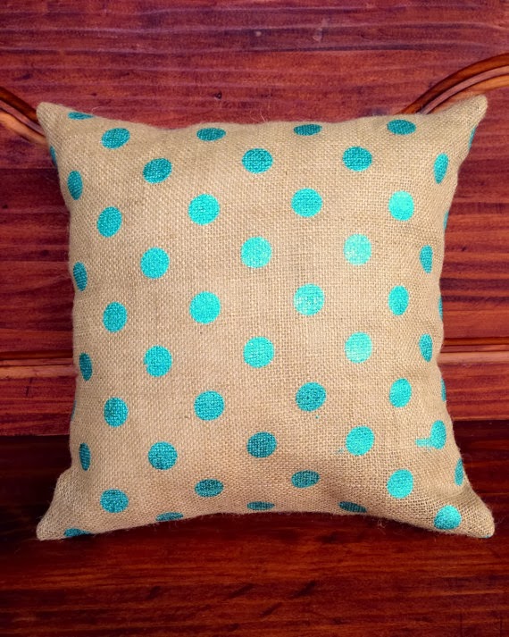 Turquiose Polka Dot Burlap Pillow Cover,