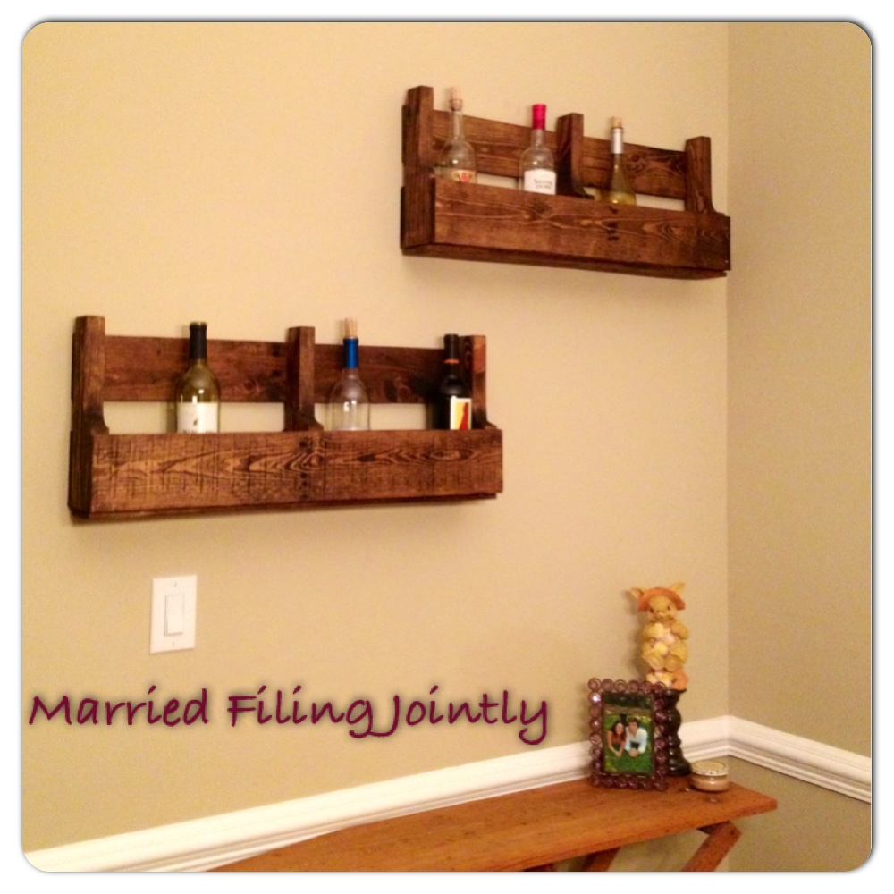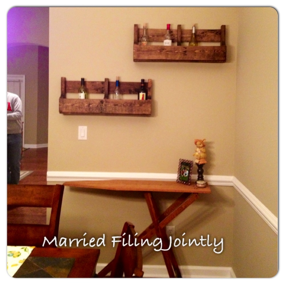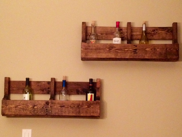 After getting the idea off of one of my favorite blogs, Mason Jar Moments, we spent the weekend working on our newest project that we hung in our dinning room. This weekend’s project was building these wine racks from reclaimed pallet wood.