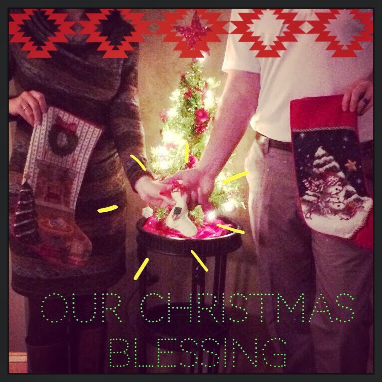 We made our big announcement this week through a Christmas card we sent out. Stupid me (let’s blame it on pregnancy brain) didn’t take a photo of the card we sent out but the front said “May Your Days Be Merry & Bright” and you opened it up to find the picture above on the left side of the card and another picture of us holding stockings and a baby stocking on the right in front of a Christmas tree that said Love, with our names and baby T.