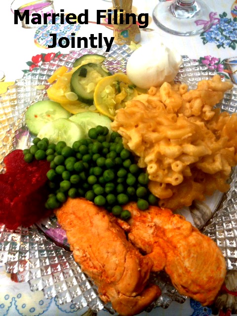 This year my grandmother bought a honey baked ham and mom made buffalo chicken tenders, homemade mac and cheese, jello, rolls, boiled eggs, deviled eggs, peas, squash, and cucumber salad. Um yum! And of course I made dessert.