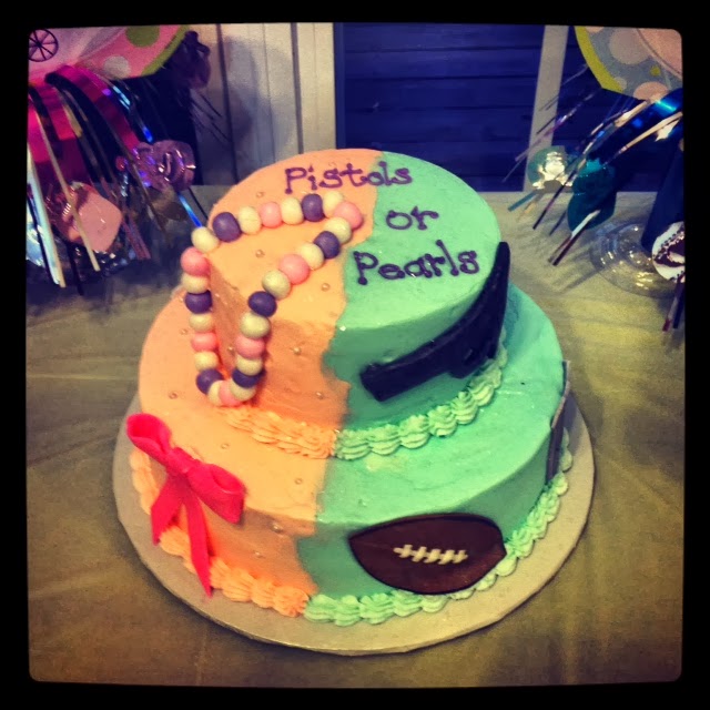 Gender Reveal party’s have become all the rage lately! For those of you who haven’t heard of a Gender Reveal Party it is a party where you let all your friends and family know the gender of your baby in a fun way! At this party they cut into a cake that said pistols or pearls to see what color the cake was…it was pink! Baby girls everywhere! Whoohoo!