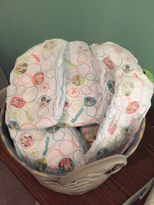 We have a convenient (but cute) basket that sits on my son’s dresser which doubles as his changing station that we keep stuffed with Huggies Snug & Dry diapers that we buy in bulk from Sam’s Club. We prefer these diapers (especially at night time) as they provide up to 12 hours of protection and keep your baby’s skin dry and rash free.