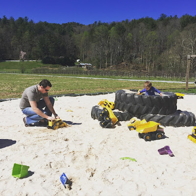 Love this picture of my “boys” playing in the sand at Hillside Orchard